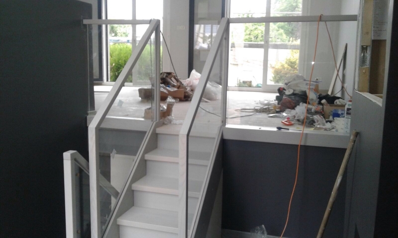 Escalier en hêtre sur mesure Quand les clients sont gentils :) nous prenons des prestations supplémentaires, comme cet escalier en hêtre/verre, fabriqué sur mesure.