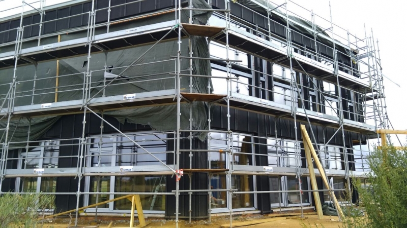 Nous venons de poser les fenêtres pour les bureaux à Baden. 7 hommes ont posé toutes les 34 fenêtres dans 3 jours pour arriver dans les délais. Les fenêtres sont PVC;, triple vitrage, le profil de fenêtres est REHAU SYNEGO, la valeur Uw moyen de toutes les fenêtres 0,8 W/m2*K.