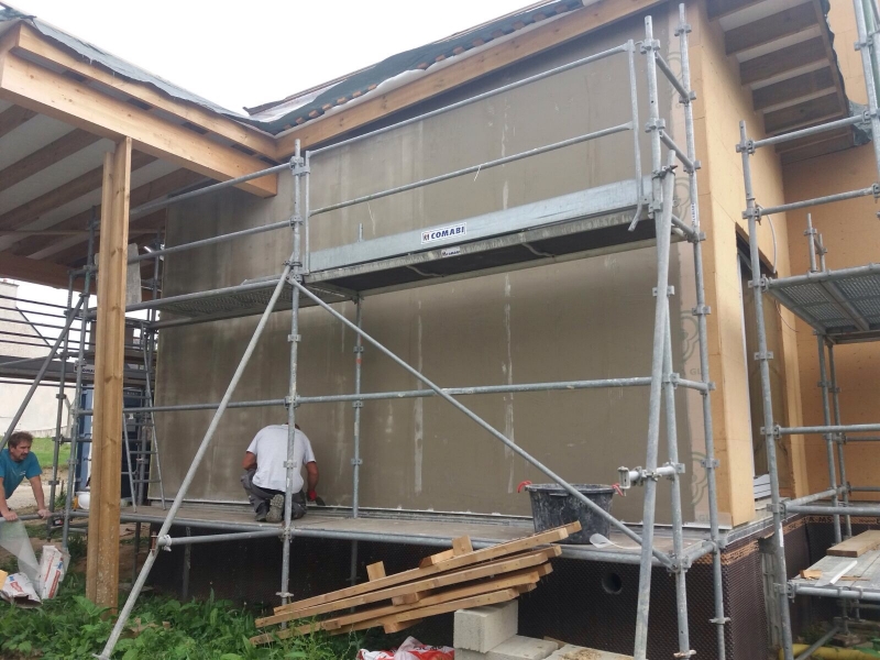 Façade à Surzur Nous avons commencé la façade à Surzur , qui sera finie avec le crépi à la base de résines silicones, 1,5mm.