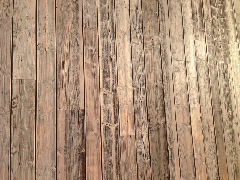 Le bardage en bois ancien, traité en huile du lin, posé il y a 7 mois.