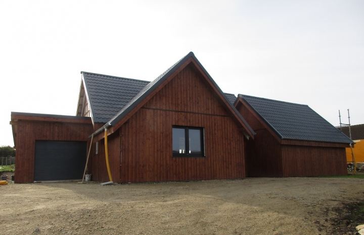 Nos clients-autoconstructeurs ont réussi à construire leur maison hors d'eau hors d'air. Nous avons dessiné les plans, fait l'étude technique et préfabriqué la maison en panneaux ossature bois. Tous les matériaux de construction avec les menuiseries extérieures étaient envoyées en 3 camions. Et les clients ont construit leur maison eux mêmes selon notre notice de pose.