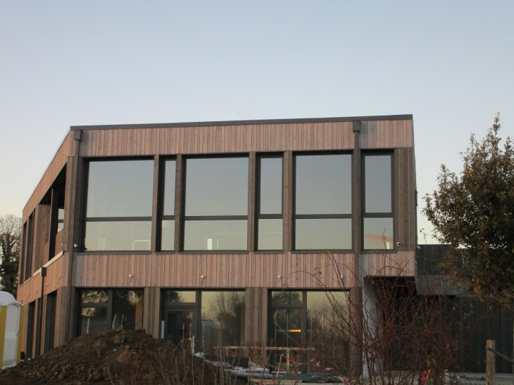 Nous avons fini notre plus grand chantier en Bretagne: presque 400m2 de bureaux, construction en poteaux-poutres, passif. Nous avons construit la bâtiment en 7 mois, avec toutes les finitions intérieurs et la couverture de toiture, fenêtres triple vitrage et bardage sur mesure.