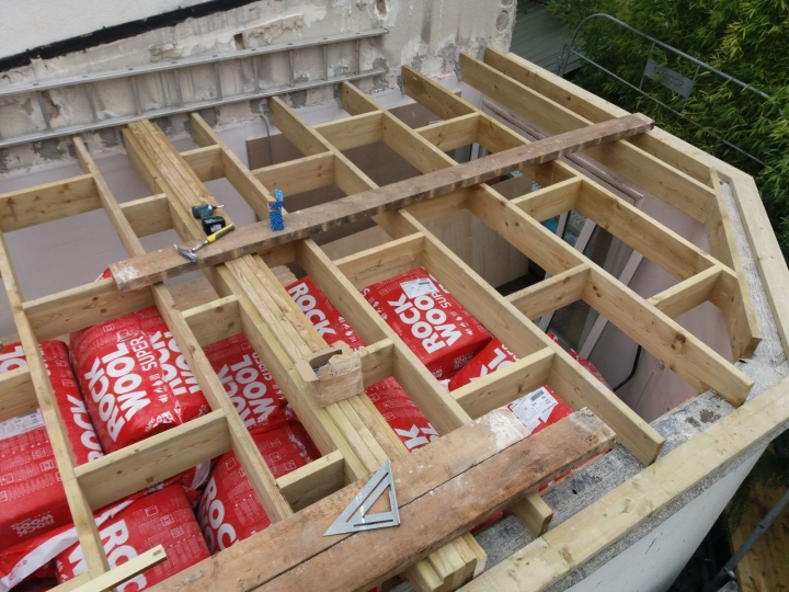 Surélévation, Antony, France Le plancher de la surélévation à Antony était construit en deux jours, avec toutes les difficultés habituelles de surélévations.