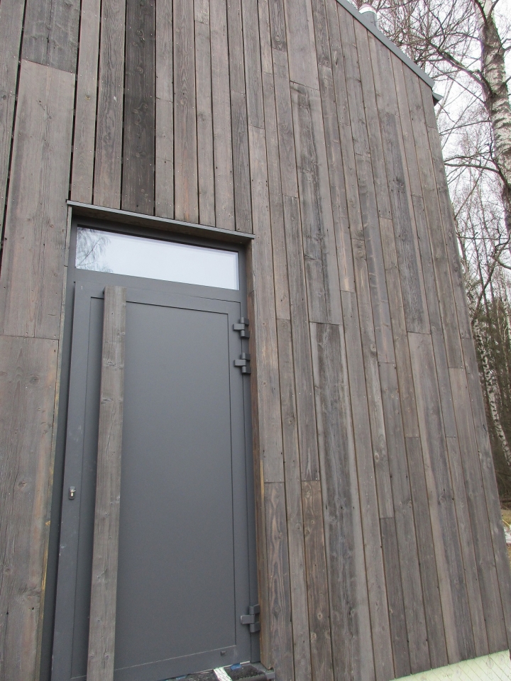 Poignée en ALU, finie avec le même bardage que la façade.
