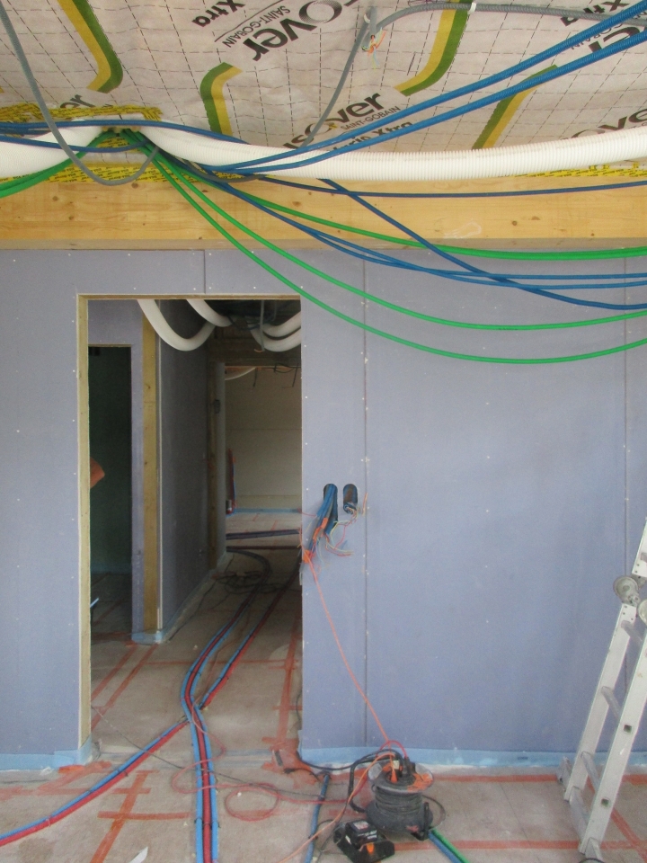 Placoplâtre acoustique, Questembert Pour le cabinet en construction, l'intérieur de l'ossature nous finissons avec OSB3 12mm et placoplâtre KNAUF, y compris acoustique.