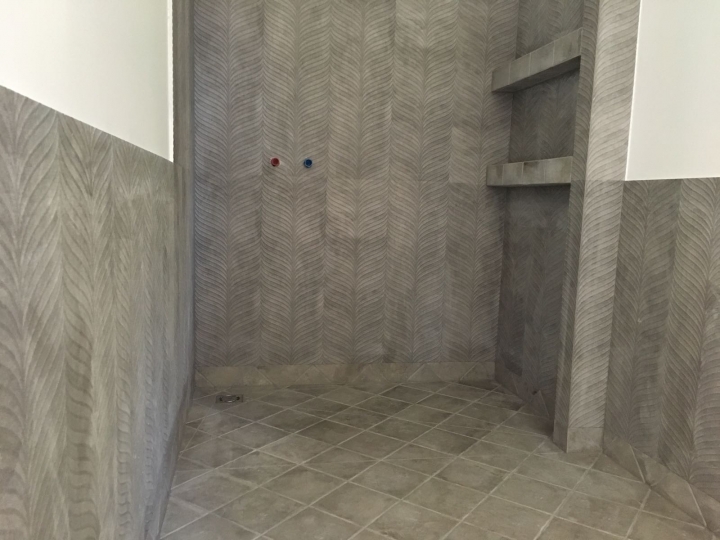 Douche à l'italienne, Lettonie Nous avons fini une douche à l'italienne avec une pose de carrelage et des plinthes en diagonale.