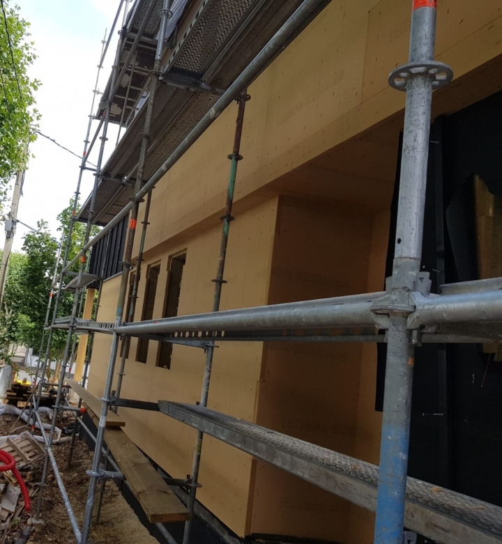 Avancées de façade, Goussainville La façade est construite avec des avancées pour des questions esthétiques et pas techniques. Il y aura un mélange de bardage et crépi.