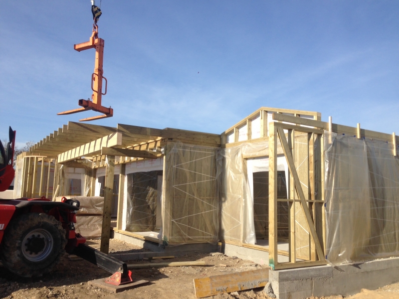 St Vivien, France Pour ce projet nous avons fourni le matériel et construit la maison sur le chantier. Nous étions en collaboration avec notre partenaire en Ile de France. Nous avons réussi à finir ce chantier hors d'eau hors d'air en 2 semaines !
