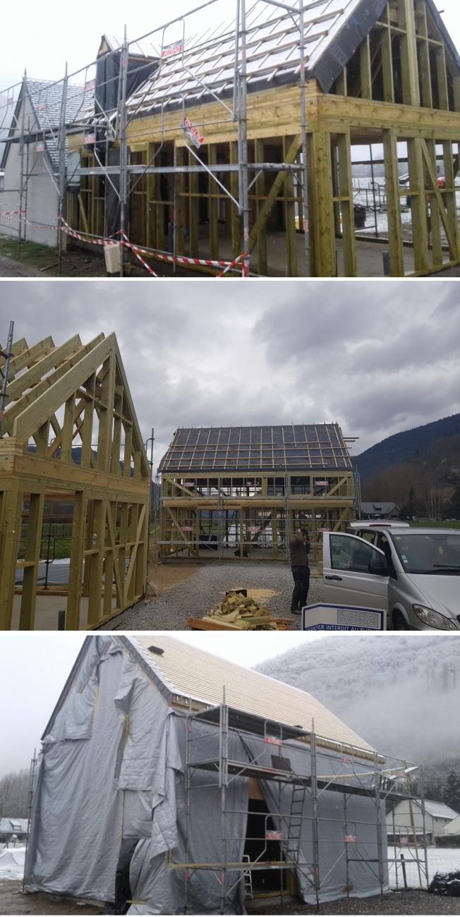 Sous-toiture posée, Pyrénées Faitière en lamellé-collé GL24, écran de sous-toiture hautement perméable à la vapeur et résistant à la traction pro clima SOLITEX MENTO.