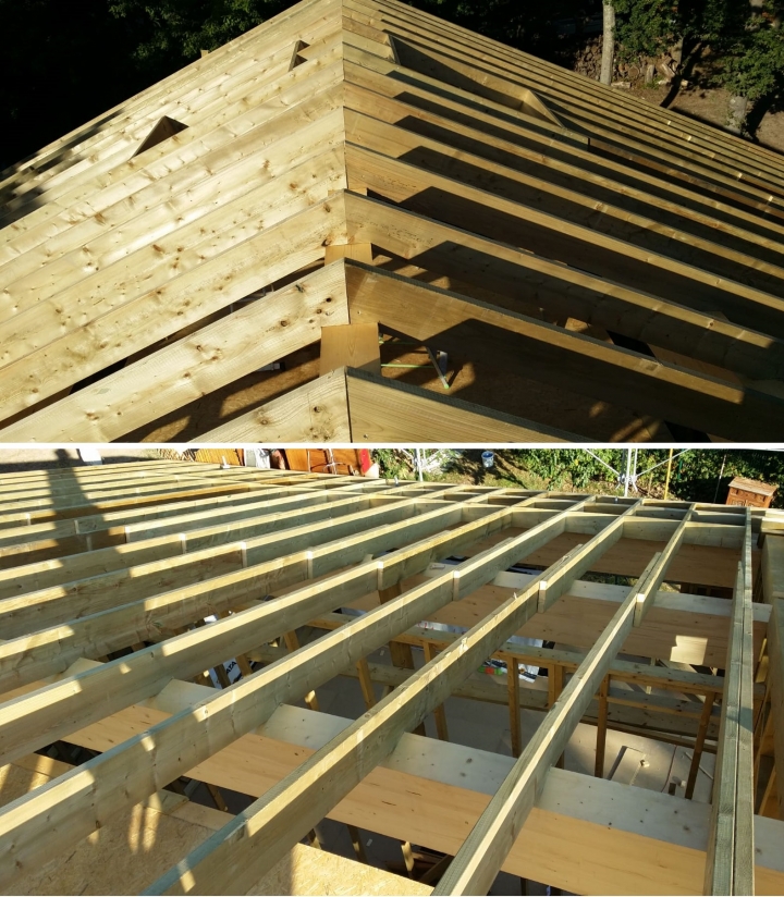 Charpente finie en deux jours, en épicéa nordique, classe C24, autoclave.