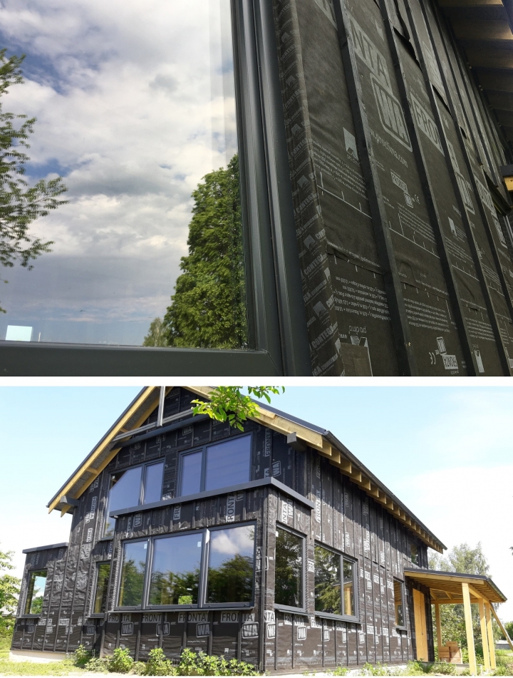 Fenêtres PVC triple vitrage, posées avec compribande imprégnée GREENTEQ, et couverte avec une bande CONTEGA SOLIDO EXO.