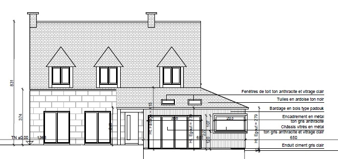 Permis d'une extension, Ploemeur Permis de construire reçu pour une extension en Bretagne. Bardage en padouk, fenêtres ALU triple vitrage. La construction prévue en octobre.