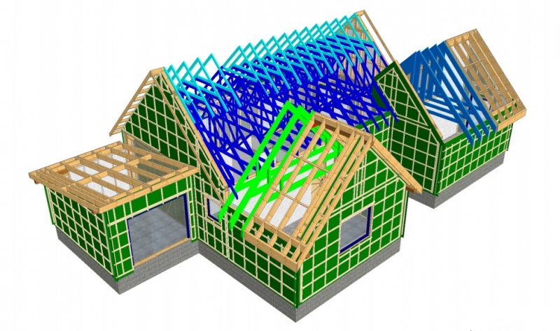 Nous sommes en train de fabriquer une maison en autoconstruction: les murs extérieurs sont en panneaux préfabriqués , et la toiture est en fermettes. Nous avons fais les plans ensemble avec le client, tout sur mesure, et nous fournissons une instruction pour la pose. Et pendant la pose un de nos anciens clients aide au nouveau client poser la maison par lui même.