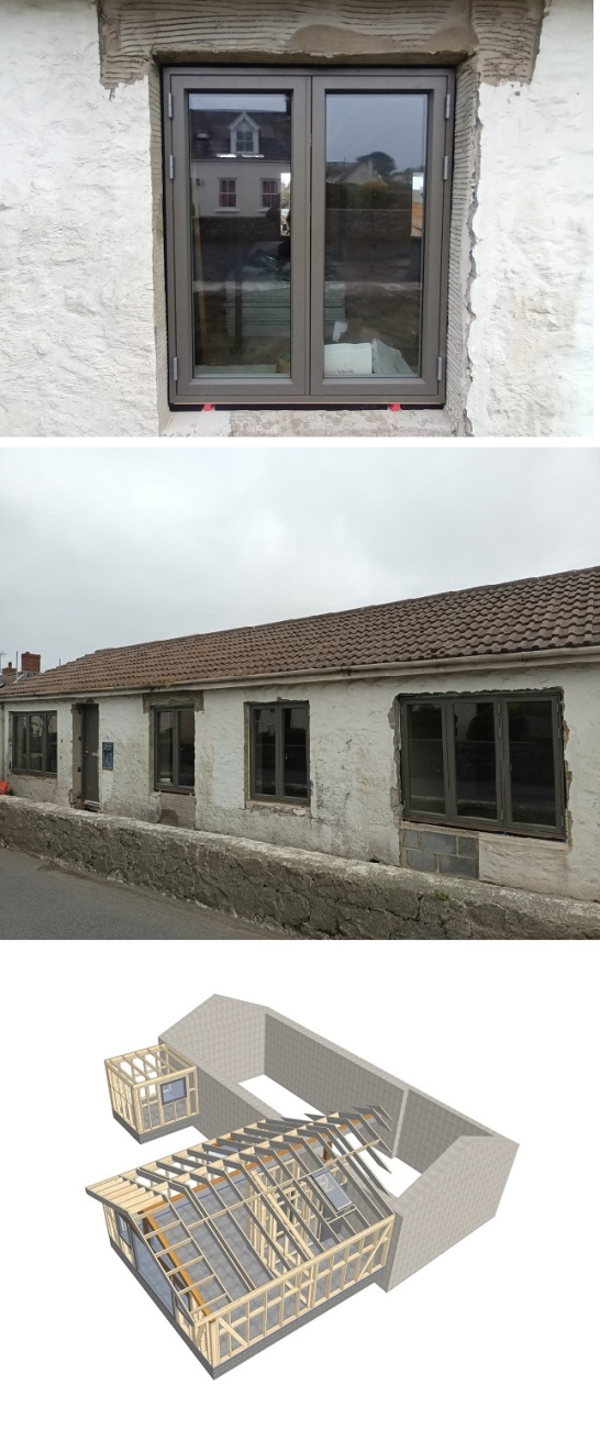 1e chantier à Guernesey Rénovation d'une maison existante en pierre avec deux extensions en ossature bois.