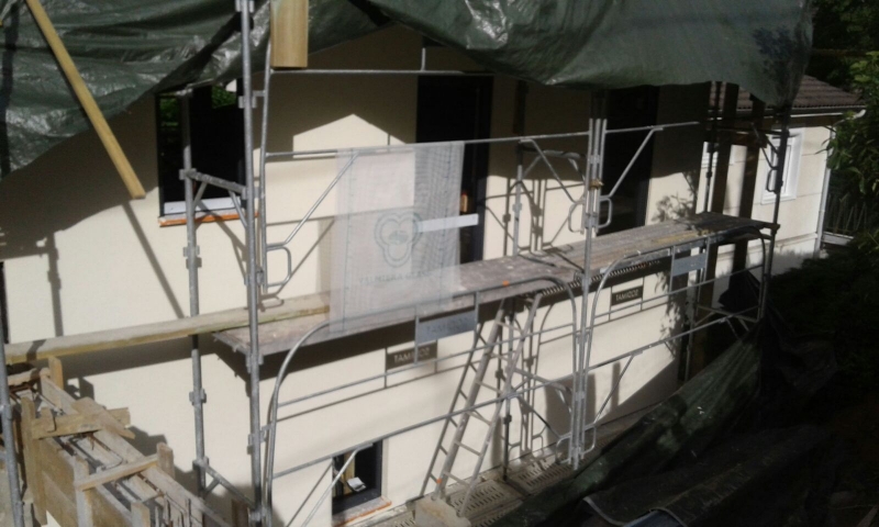 Nous avons fini le crépi (silicone) à Marly-la-Ville. Les fenêtres posées dans cette maison - REHAU SYNEGO avec une isolation thermique supérieur. Les volets roulants sont cachés côté intérieur et côté extérieur (la trappe de visite s'ouvre en bas).