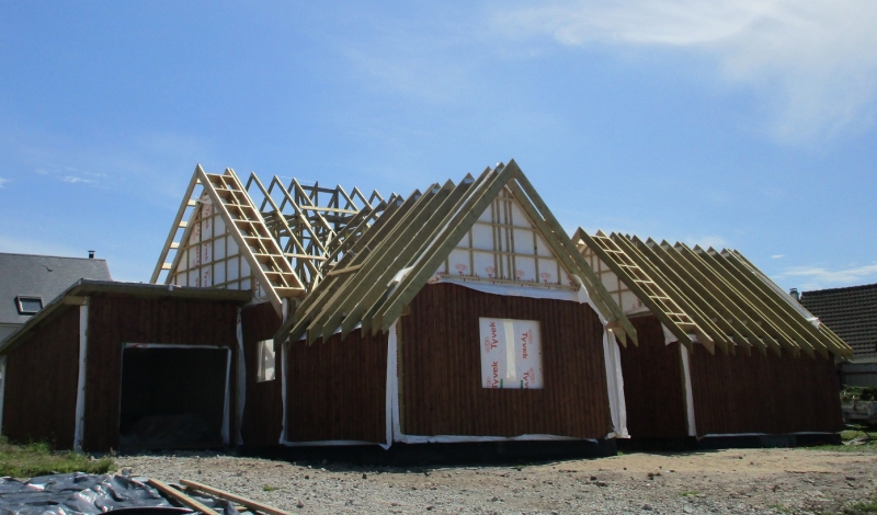 Hors d'eau, Les Moitiers d'Allonne Les autoconstructeurs ont bien réussi à poser leur maison! Nous avons commencé à dessiner les plans en juillet 2016. En juillet 2017 la maison sera hors d'eau hors d'air.
